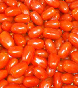 Lycopersicon esculentum. Familia de las Solanáceas. Hortalizas de fruto. Ingrediente universal. Fruto alargado en forma de pera de color rojo brillante y dureza optima. Pulpa roja con semillas. Ligero sabor ácido . La intensidad de los tomates cherry la vemos presenta en este tomate.